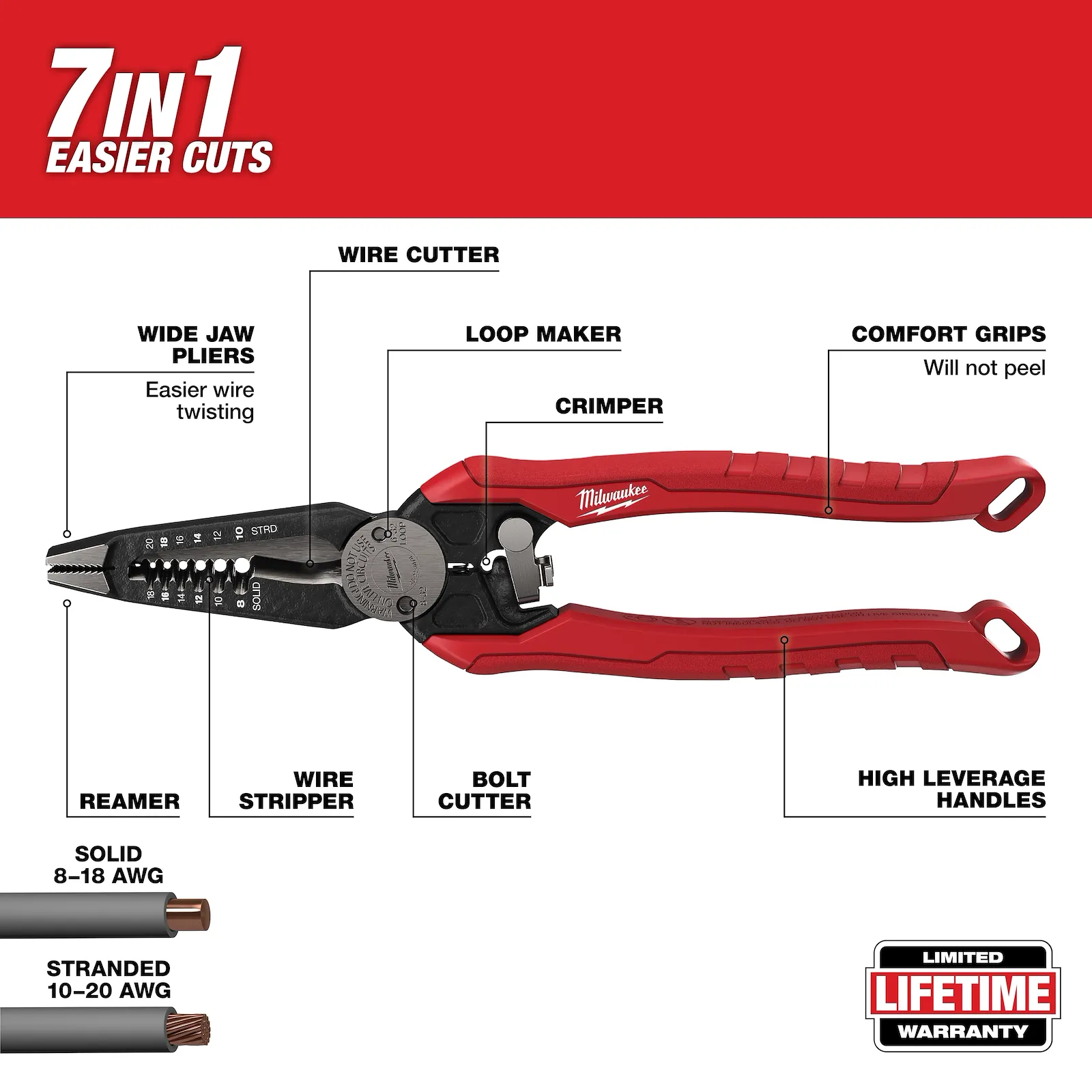 Alicate 7 en 1 Alicate electricista Herramienta eléctrica manual Alicate multifunción Crimpadora y pelacables Milwaukee pliers