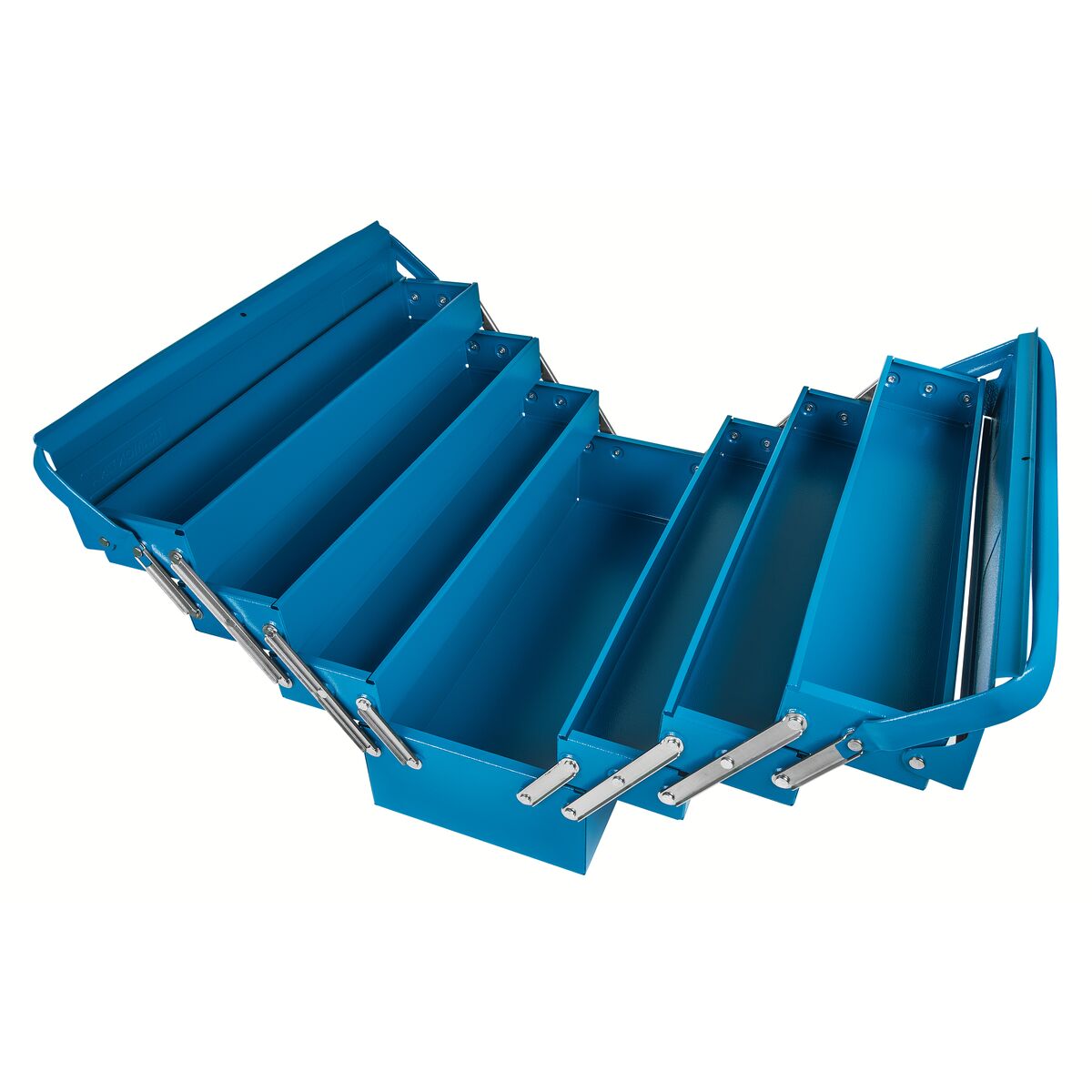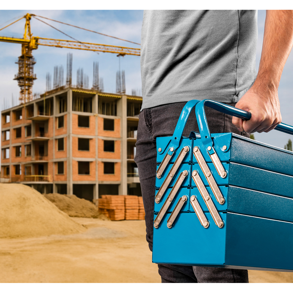 Caja de herramientas en acero con estructura de chapas cromadas y asas fijas de alta resistencia. Posee pintura electrostática y materiales anticorrosivos que prolongan su durabilidad. Su diseño de 7 cajones ofrece amplio espacio y una organización superior para talleres, obras y mantenimiento profesional.