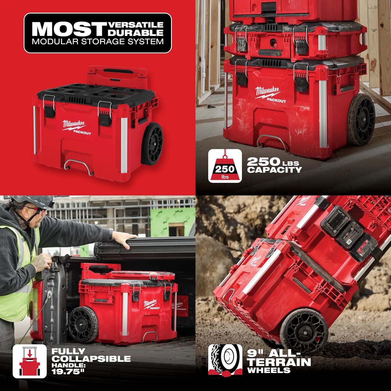 Caja rodante Sistema PACKOUT Almacenamiento modular Caja con ruedas Organizador profesional Milwaukee PACKOUT