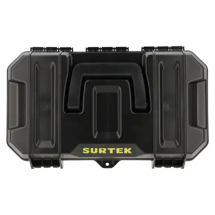 La caja portaherramientas plástica Surtek negra de 19" x 10" es ideal para la transportación y organización de distintos objetos en talleres, obra o uso doméstico. Incorpora broches de presión con recubrimiento plástico de alta resistencia y mango plástico, ofreciendo un cierre seguro y un manejo cómodo. Su construcción en plástico resistente brinda durabilidad con bajo peso y fácil mantenimiento.