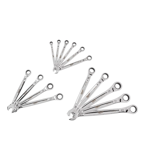 - Llaves métricas con trinquete: 8, 9, 10, 11, 12, 13, 14, 15, 16, 17, 18, 19, 20, 21 y 22 mm