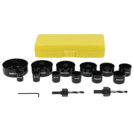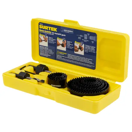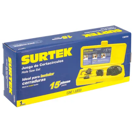 El juego de sierras cortacírculos Surtek de 15 piezas está diseñado para perforar una amplia variedad de materiales ferrosos y no ferrosos, como hierro, acero, aluminio, madera, PVC y acrílico. Fabricadas en material bimetálico, estas sierras ofrecen mayor durabilidad y desempeño en uso profesional. El set se entrega en caja plástica, ideal para mantener las piezas organizadas y facilitar su transporte.