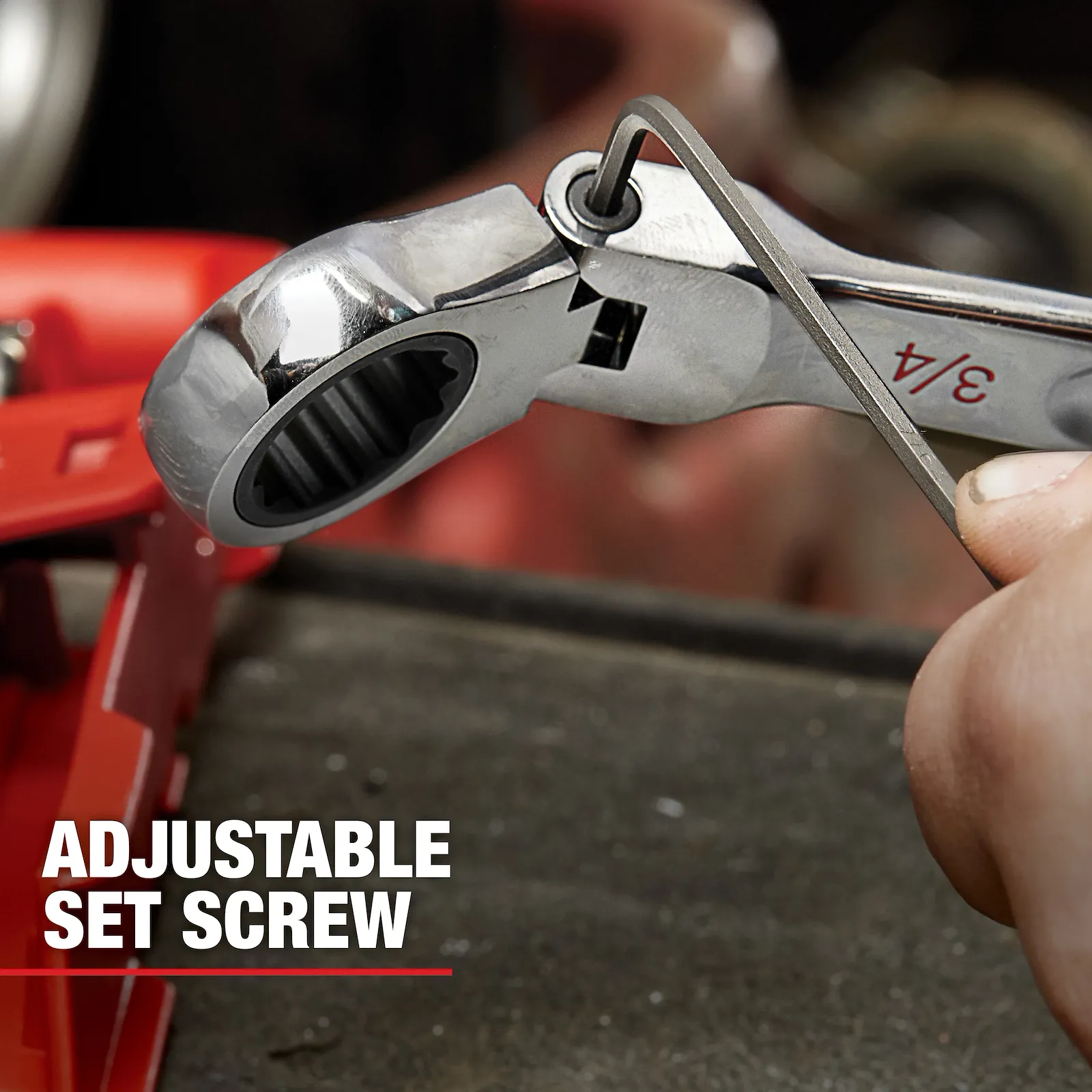 La llave combinada métrica de 8 mm con trinquete y cabeza flexible está diseñada para trabajar con rapidez y precisión en zonas de difícil acceso. Su arco de giro de solo 2,5° y 144 posiciones de trinquete permiten avances eficientes con mínimo movimiento. La cabeza flexible mejora la accesibilidad, mientras el mecanismo de trinquetes dobles apilados incrementa la durabilidad y prolonga la vida útil. El diseño MAXBITE™ en la boca abierta ofrece hasta un 25% más de torque que las llaves tradicionales, y el mango ergonómico tipo I-Beam garantiza comodidad en aplicaciones exigentes. Respaldada por garantía de por vida.