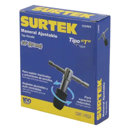 Maneral en “T” Surtek de 1/4″, firme y preciso para roscado manual controlado.