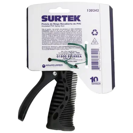La pistola de riego Surtek está diseñada para ofrecer versatilidad en el cuidado de jardines y huertos, permitiendo regar plantas de forma eficiente o eliminar suciedad gruesa en terrazas, pisos y muebles de exterior mediante su chorro concentrado.